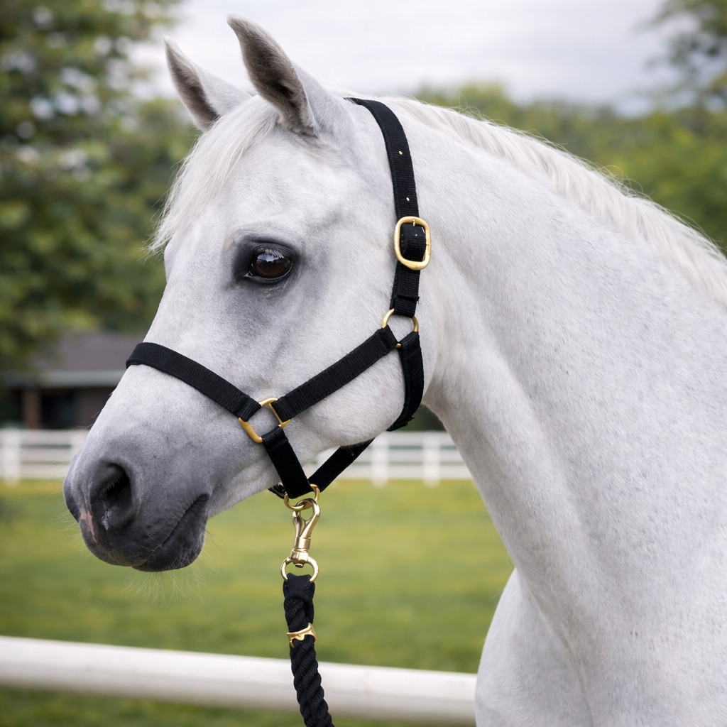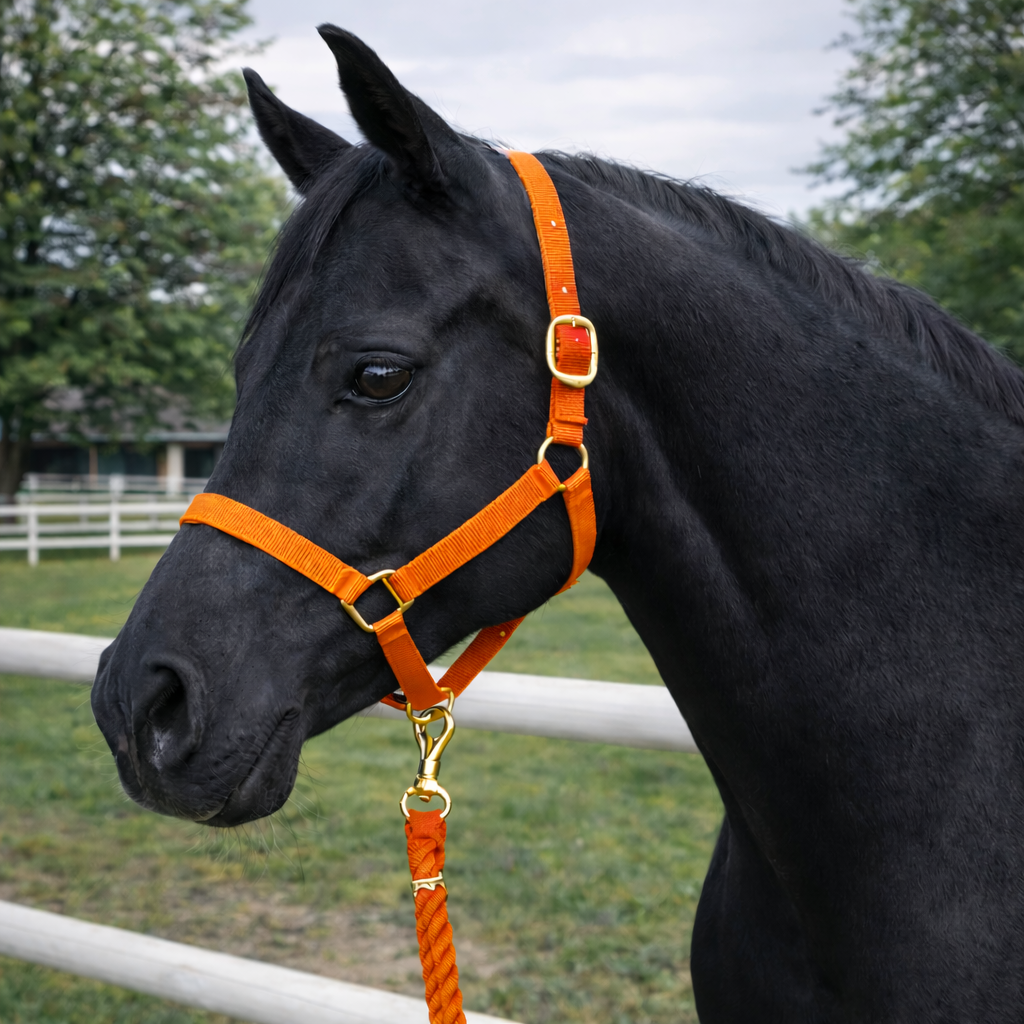 This durable nylon halter is designed for daily yard use, travelling, washing, and general handling. The adjustable headpiece ensures a secure fit, while the sturdy hardware provides reliable strength where it matters most.