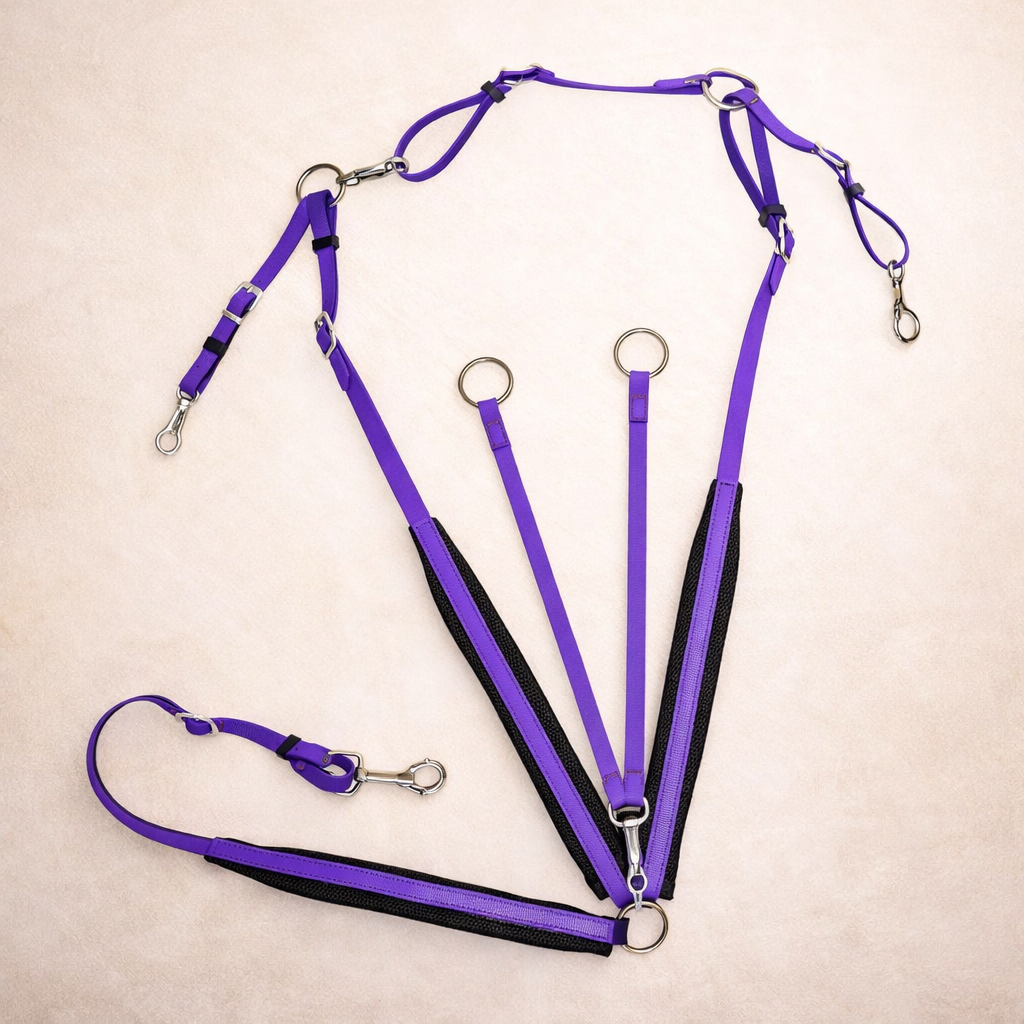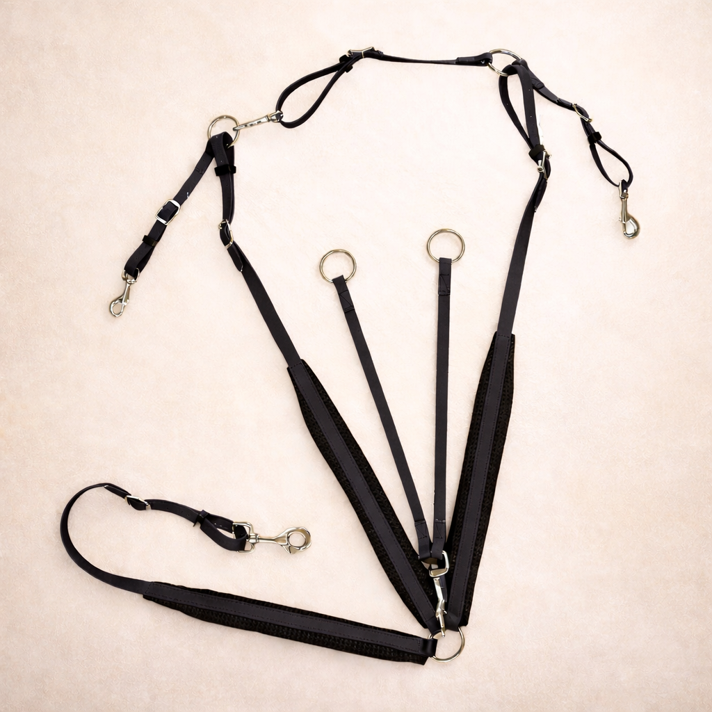 This set includes a detachable running martingale, offering versatility to suit different riding preferences and disciplines. Extremely low maintenance, the breastplate requires nothing more than a quick rinse after use and hanging to dry — no oiling or conditioning needed.